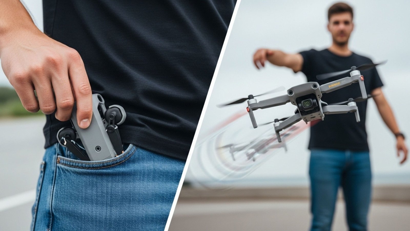 El dispositivo pesa solo 112 gramos y se pliega hasta alcanzar el tamaño de un smartphone, lo que permite llevarlo en el bolsillo. Su estructura ultraligera está diseñada para soportar impactos y desplegar los rotores en milisegundos una vez que detecta movimiento en el aire.
