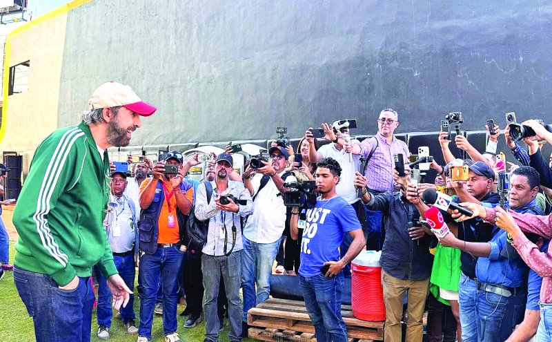 Ayer, mientras se preparaba para uno de los ensayos en el estadio, el artista, al percatarse de la presencia de los medios de comunicación, decidió tomar unos segundos para enviar un mensaje al público cibaeño.