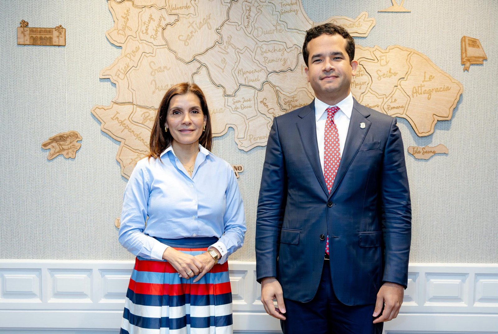 Panorama Nacional. – La embajadora de los Estados Unidos en el país, Leah Francis Campos, visitó este jueves en su despacho al senador de la República por el Distrito Nacional, Omar Fernández.