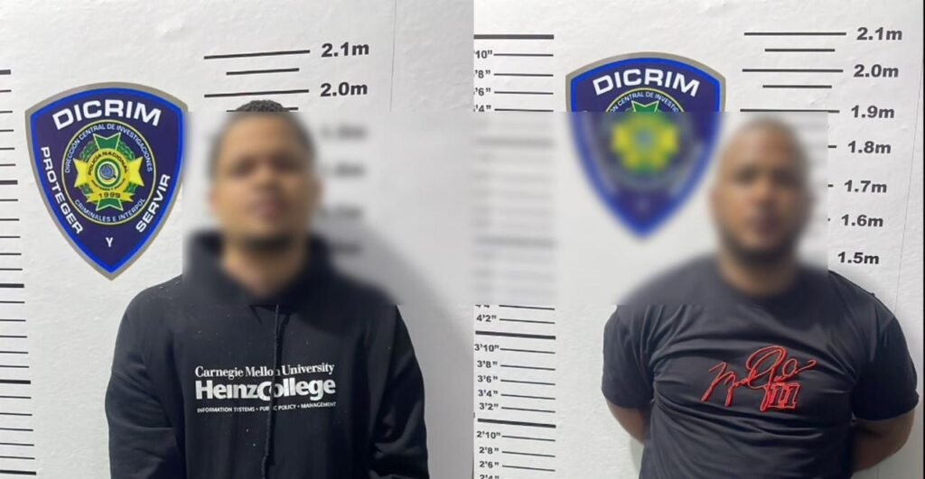 Los detenidos fueron identificados como José Miguel Adames Mercado, alias “Chemi”, de 26 años, y Jelfri Bescosme Tavárez, de 31, quienes fueron capturados por miembros de la División de Investigación de Delitos contra la Propiedad, con asiento en el destacamento de Cienfuegos.
