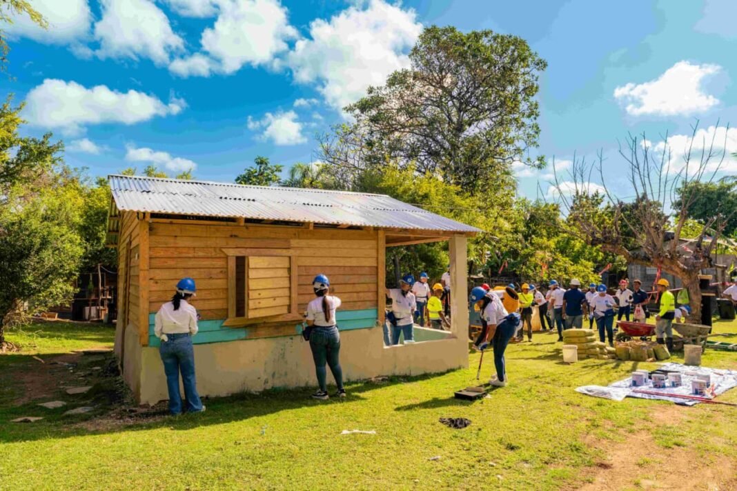 Yaguate, San Cristóbal. – Voluntarios del Banco Popular Dominicano, en alianza con Hábitat para la Humanidad República Dominicana, realizaron una jornada de trabajo en la comunidad de Duzón, municipio de Yaguate, mediante la cual se construyeron pisos de concreto en cinco viviendas y se remozó una cancha deportiva, con la participación de alrededor de 200 personas.
